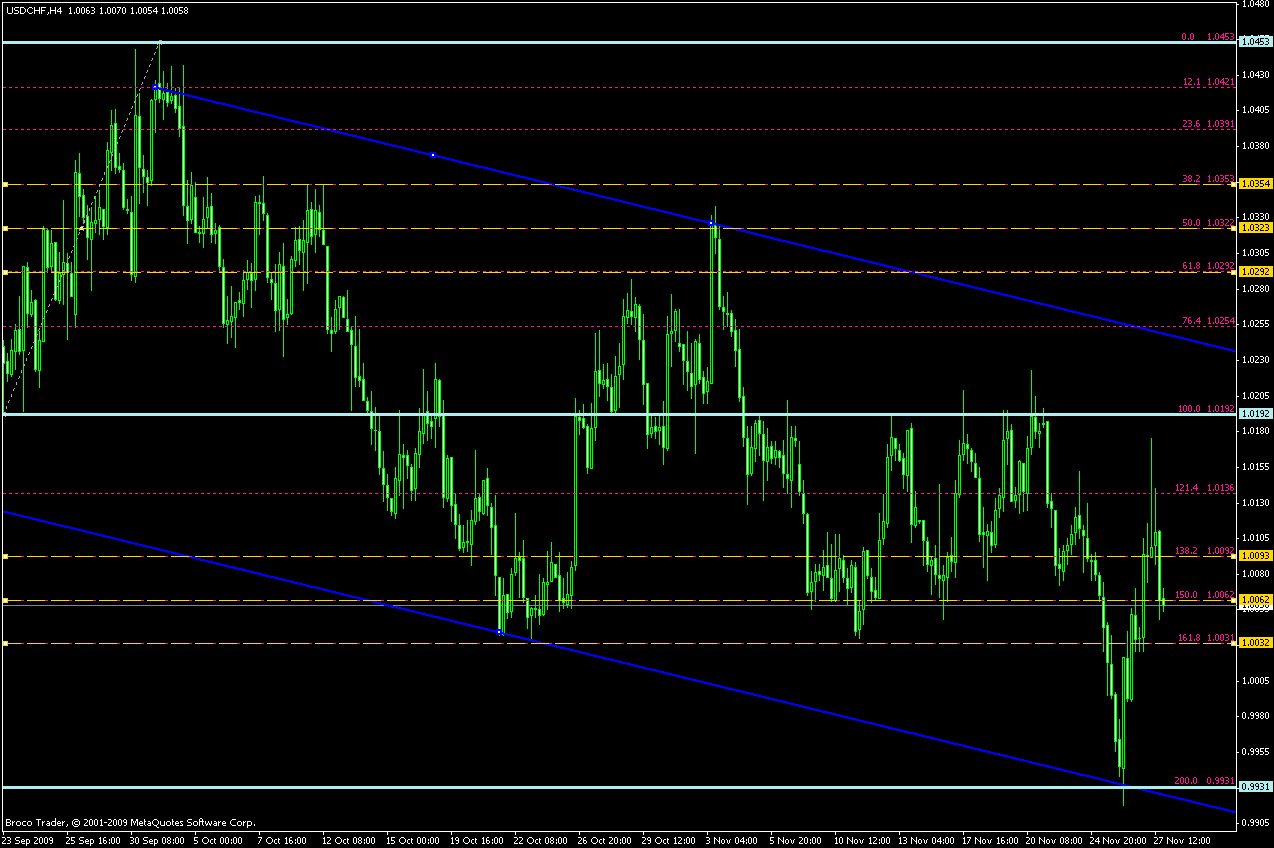 USD/CHF - Berjaya dia bounce lebih dari yang kita jangka.. dan setelah itu apa yang menarik ialah mengostankan dirinya kembali untuk membentuk W... Dengan syarat dia gostan ini tak lebih dari Fib Level 200%... next target dia ialah memecahkan Fib Level 100%, sebelum bertarung di 3 golden level bahagian atas... Long pullback dia ni JIKA ada petanda nak bounce dengan SYARAT seperti di atas...Jumaat, 27 November 2009